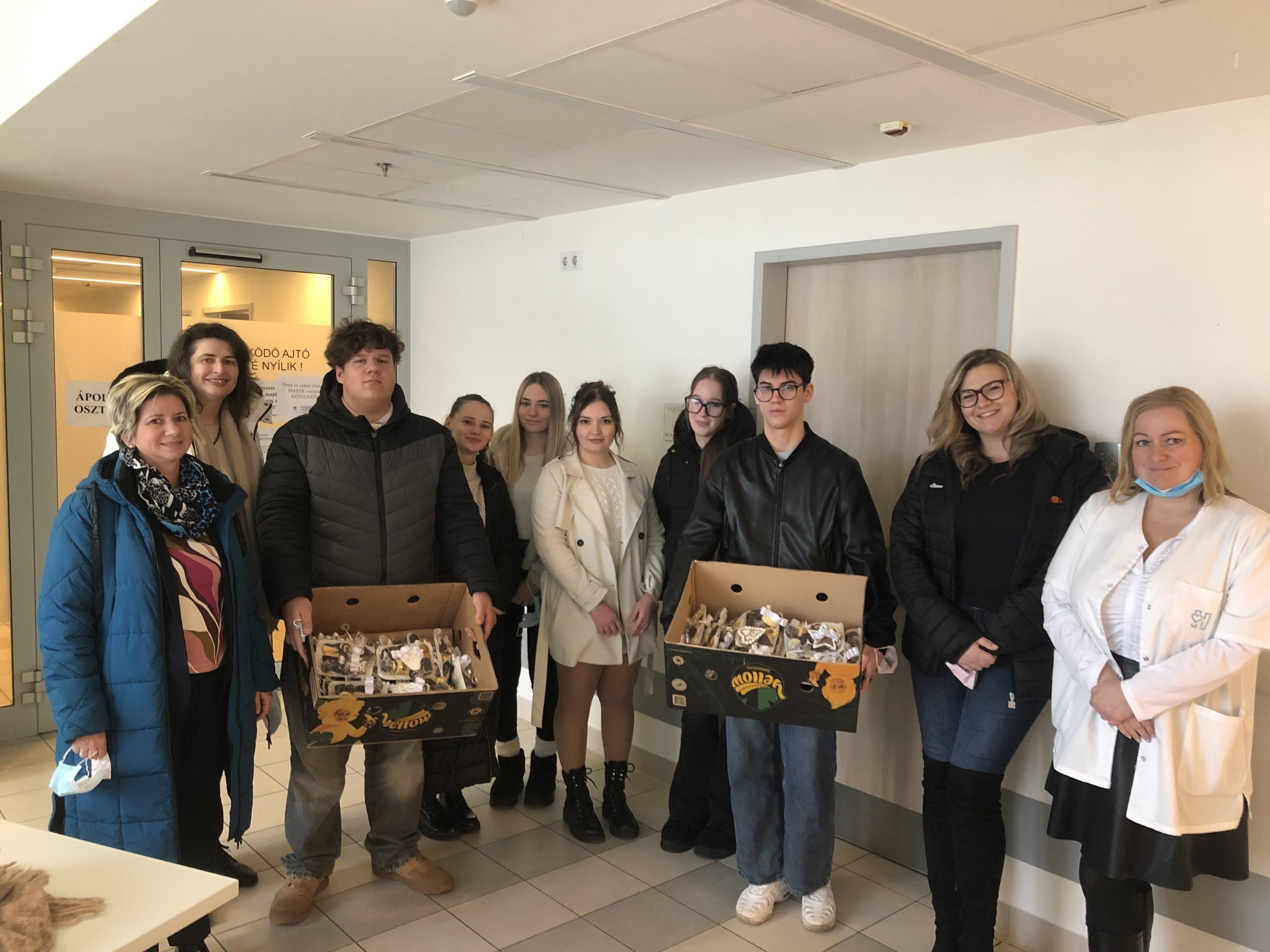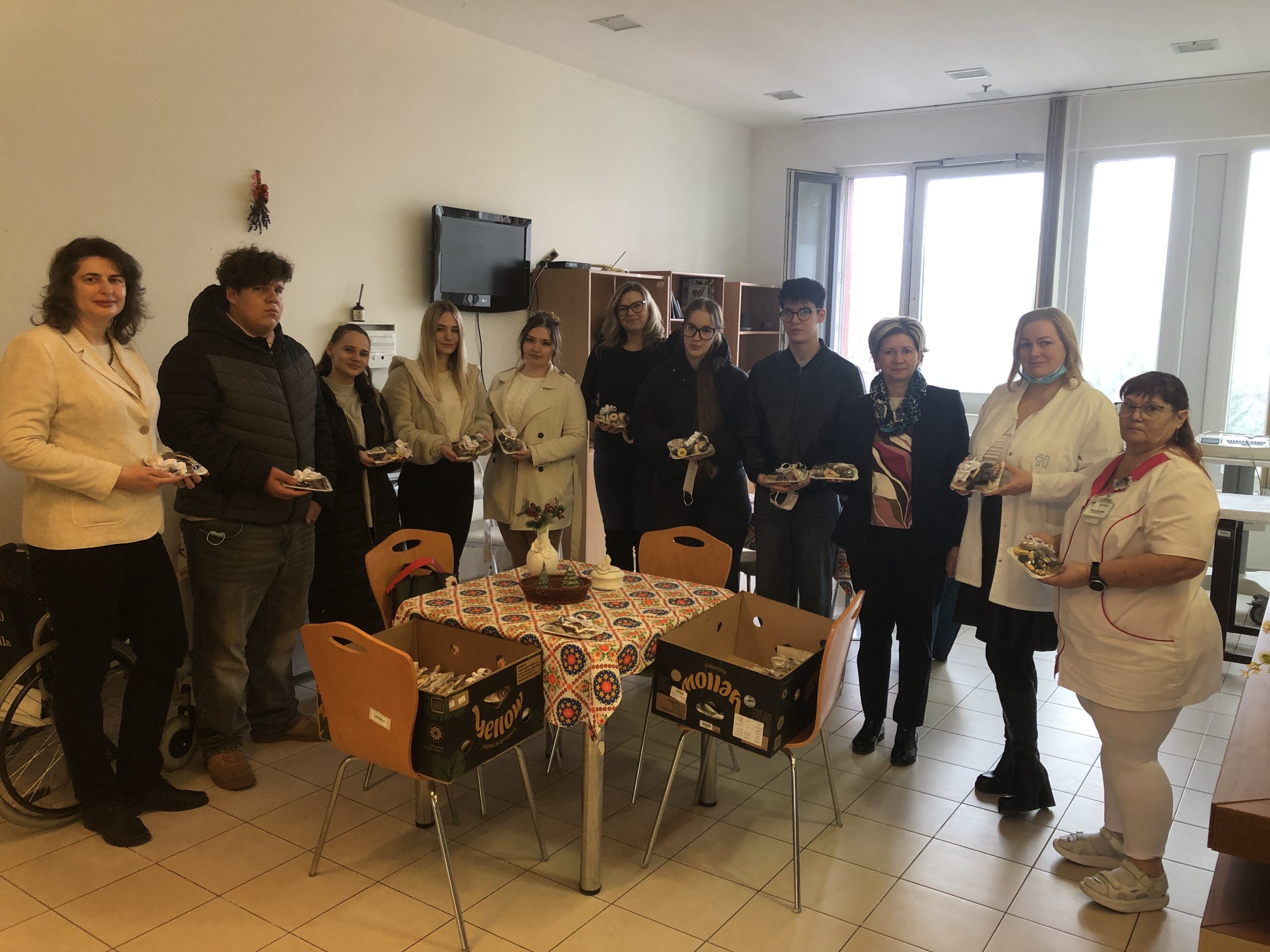Köszönjük a TSZC Kereskedelmi, Vendéglátó és Idegenforgalmi Technikum és Szakképző Iskolának, hogy idén is gondoltak a kórházunkban fekvő ápoltjainkra. A süteményeket készítő diákokat Doktor Gabriella igazgatónő és Garaminé Vigánti Márta, a Tatabányai Szakképzési Centrum főigazgató-helyettese kísérte el, hogy együtt adhassák át a süteménycsomagokat a nálunk gyógyuló betegeknek.